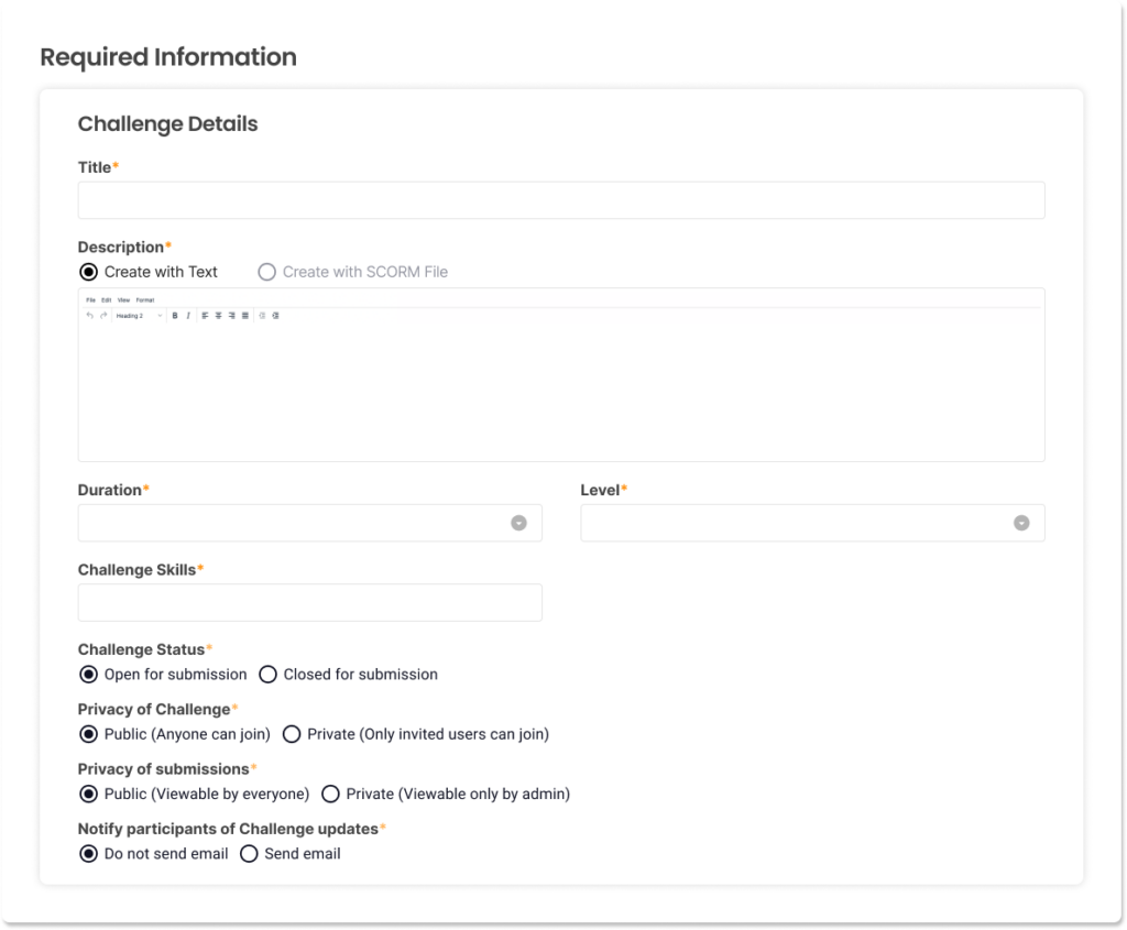 Note: The term “Challenge” is what Prepr uses when referring to e-learning content modules. They can be created manually or through the use of SCORM files.