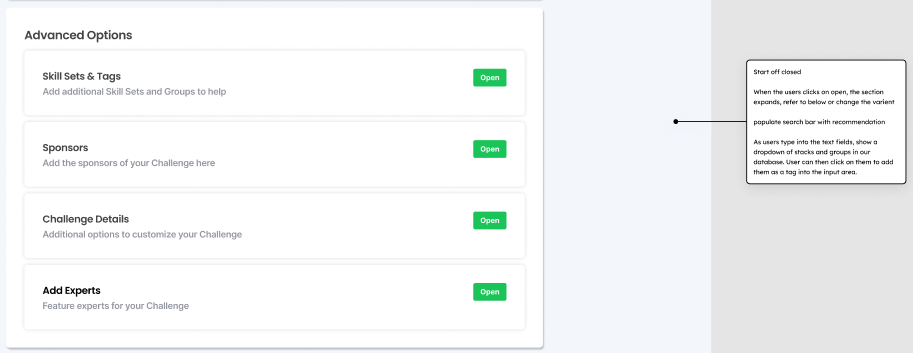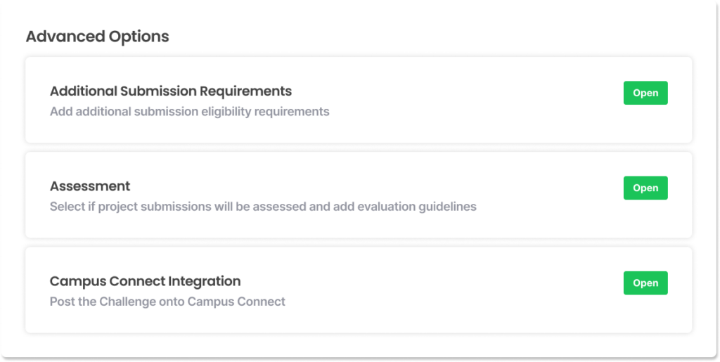 More advanced options that are not required to create Challenges are placed in its own section at the bottom and require the instructor to click on them to open. Previously, Instructors mentioned how the number of fields and descriptions everywhere made it confusing to understand what they needed to fill in. Additionally, it overwhelmed them with choices and made it hard to know what they needed to do. By putting these advanced options below and hiding the fields in expansion panels, it reduces the initial mental load of the instructor and gives them the agency to control how much they see.