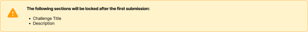 At the top of each step, there is a warning that alerts the user that the specific fields will lock after the first submission. The previous design did not have this warning, resulting in instructors being confused to why they can not edit their own content after a participant submits. This warning, in a yellow and orange colour, stands out and is placed at the top to catch the attention of the instructor and alert them.