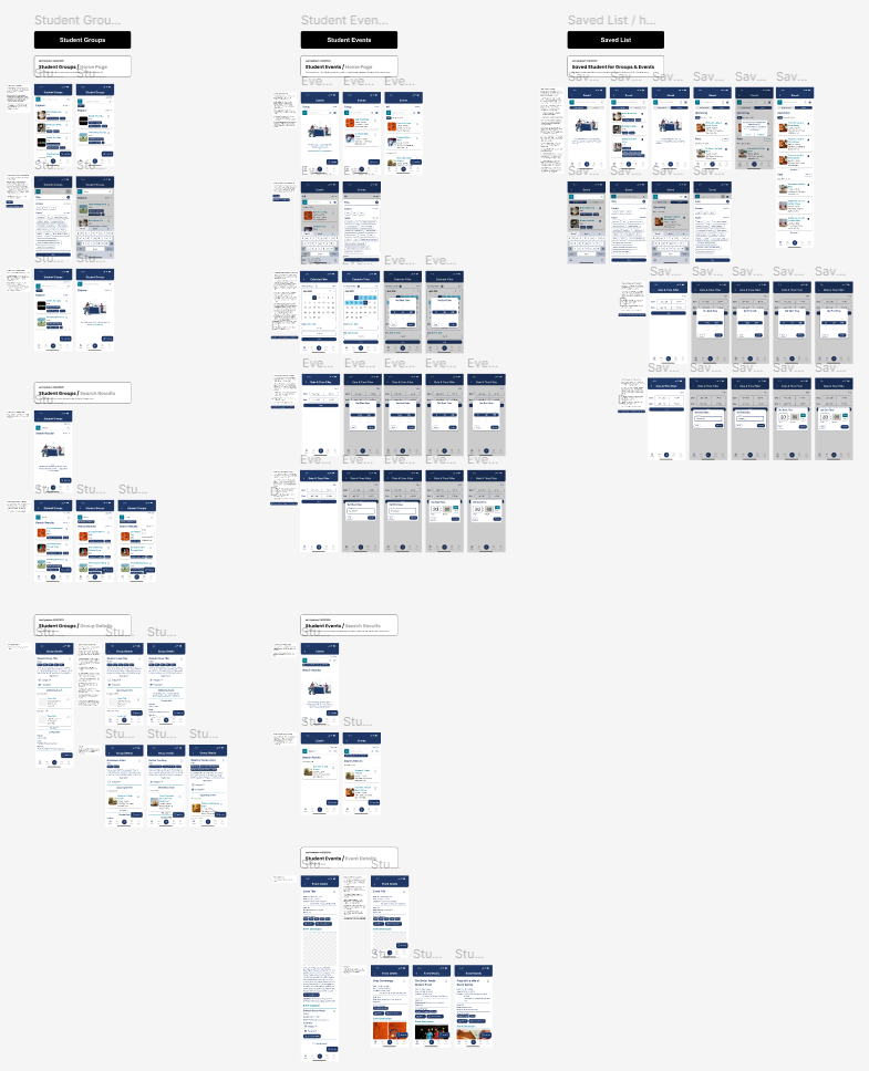 After meeting with the client and discussing potential directions for the project, we were given approval to rework the information architecture of the EventNest feature and rework features to better suit user needs. We then created the second iteration of the designs.