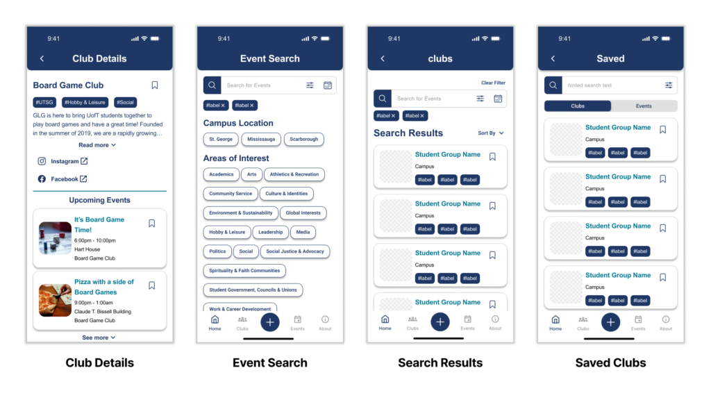 Designing a mobile app to help UofT students engage with campus clubs and events they are interested in.